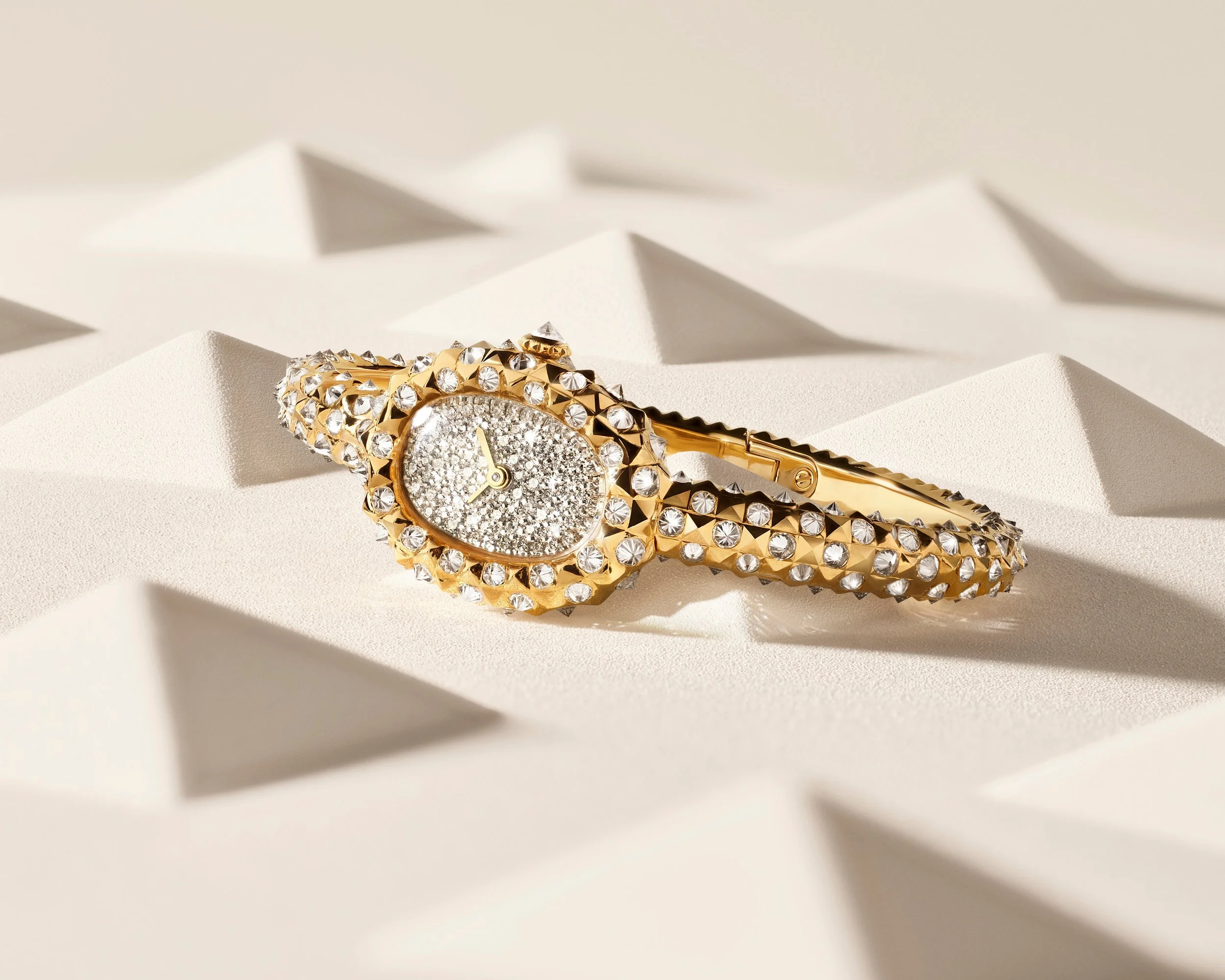 A sculptural jewellery-watch expression where heritage craftsmanship meets architectural form
