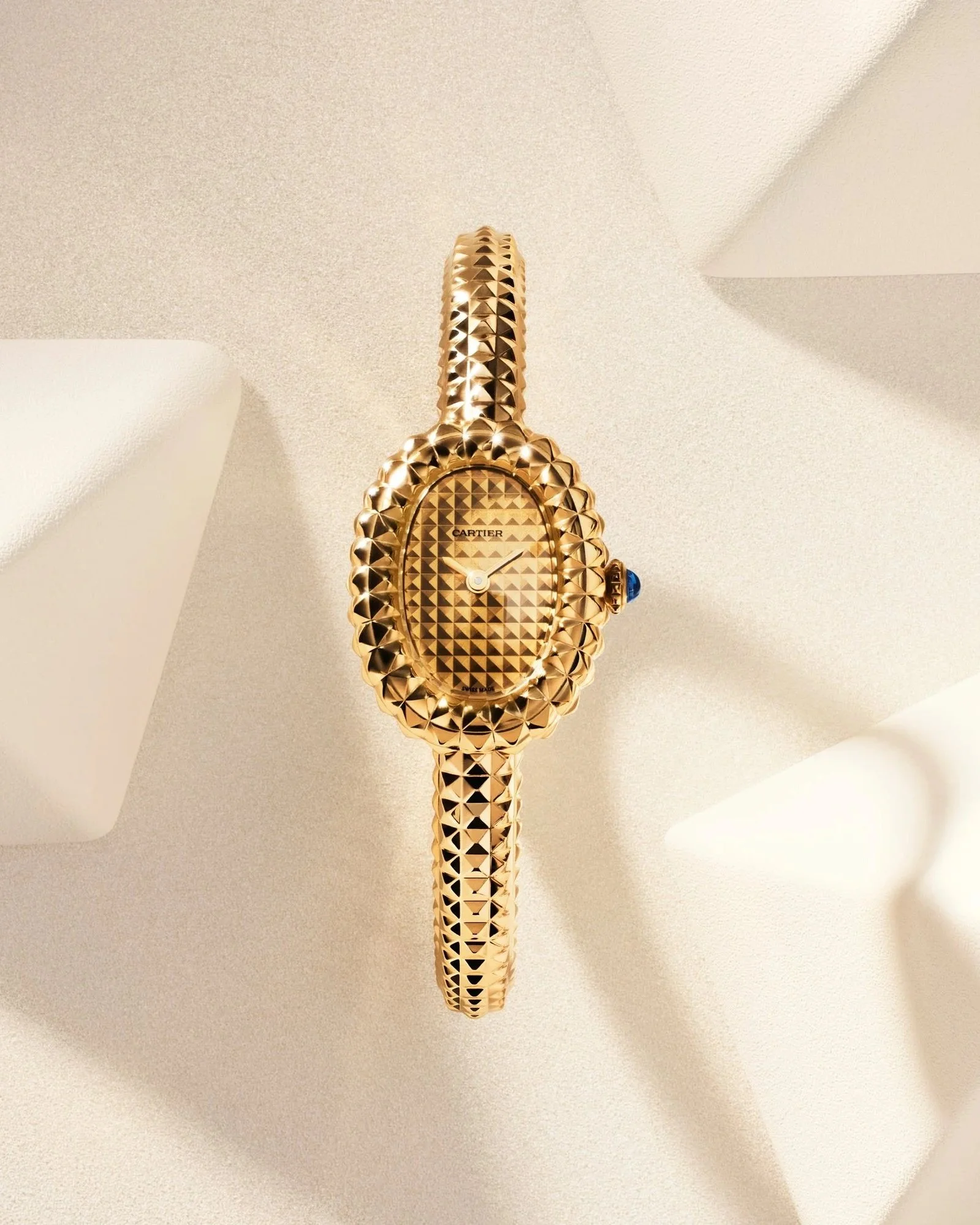 The result is a timepiece where texture, geometry, and craftsmanship converge, reinforcing Cartier’s long-standing philosophy of merging jewellery artistry with watchmaking precision.