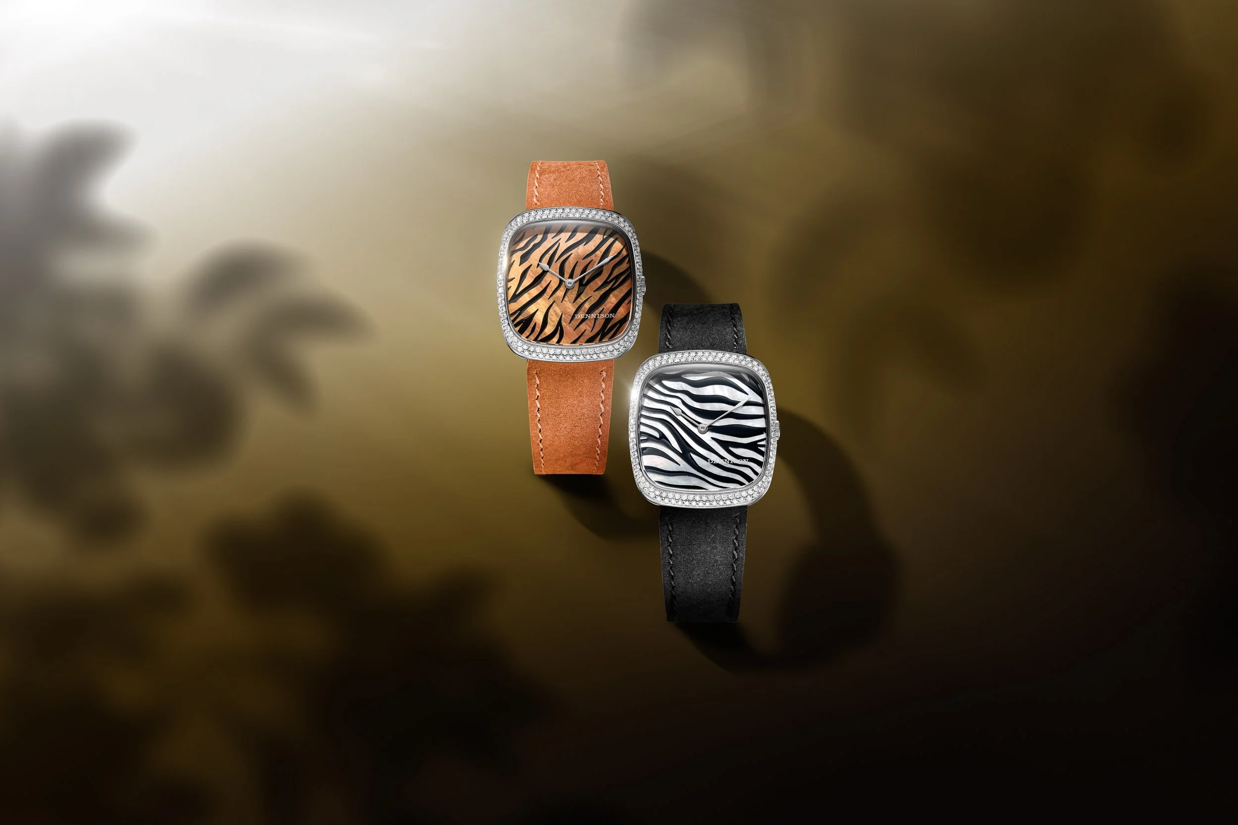 Dennison invites collectors to embrace their Safari Capsule, capturing the spirit of the wild through an iridescent backdrop of mother-of-pearl dials with hand-inlaid black enamel striping. This unique design by Emmanuel Gueit gives an untamed sense of movement, bringing a safari icon to life.
