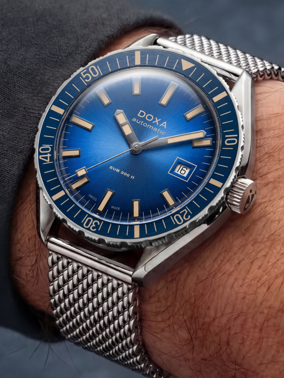 DOXA unveils the SUB 200 II – a subtle (as always) yet confident evolution of its iconic SUB dive watch concept. The SUB 200, the most accessible model in the SUB family, now features, for the first time, an elegant fumé dial that adds a new kind of depth and character to its instantly recognisable design.