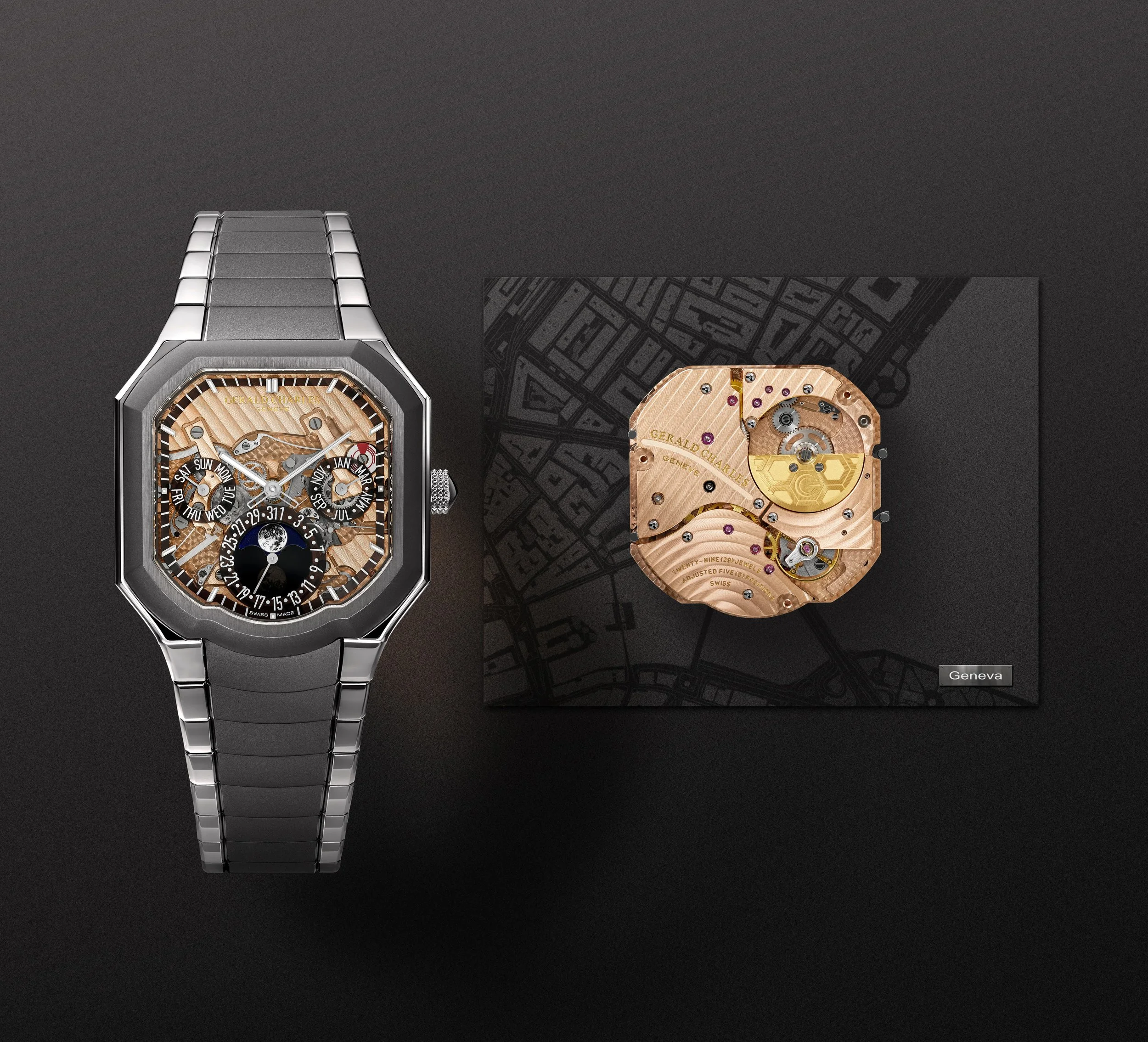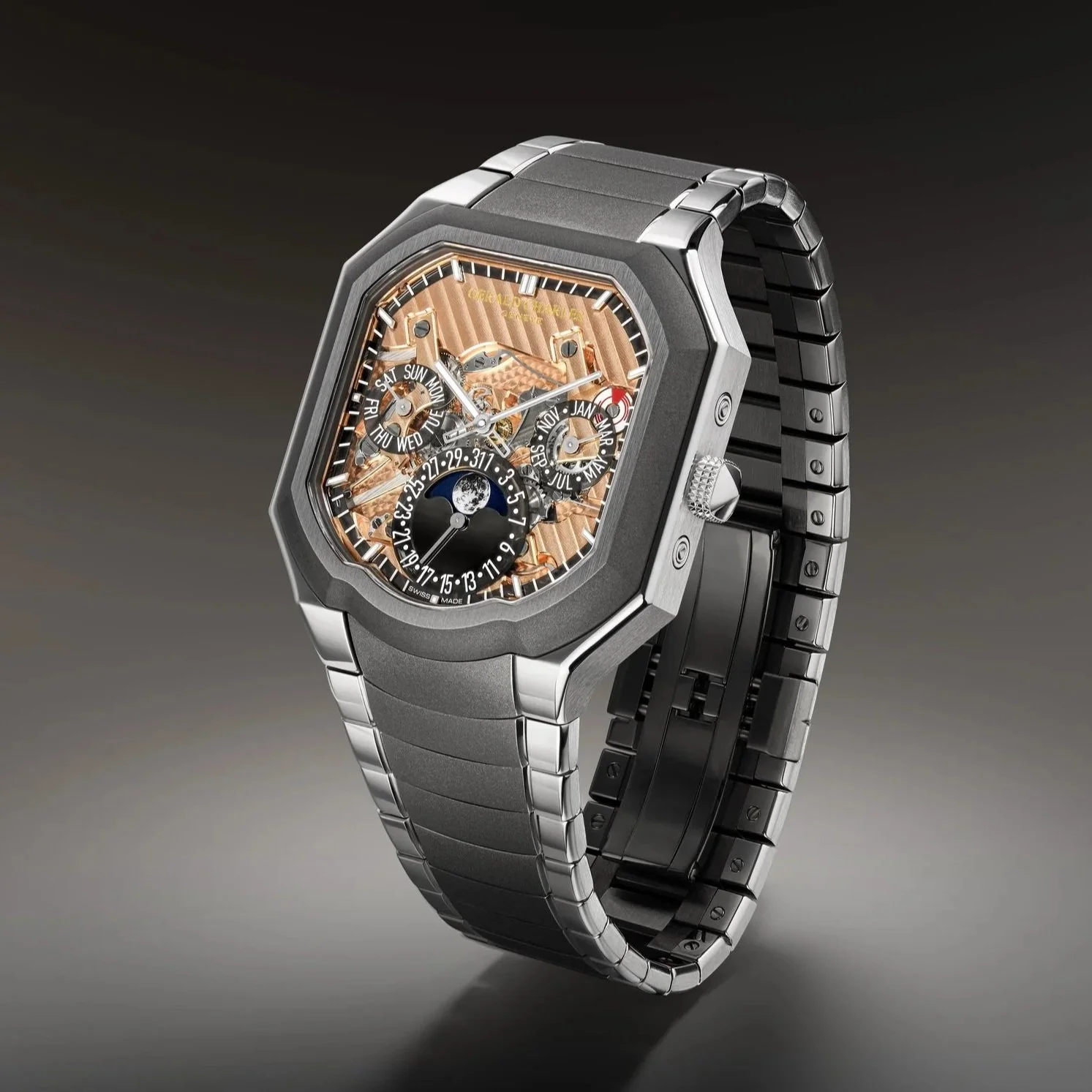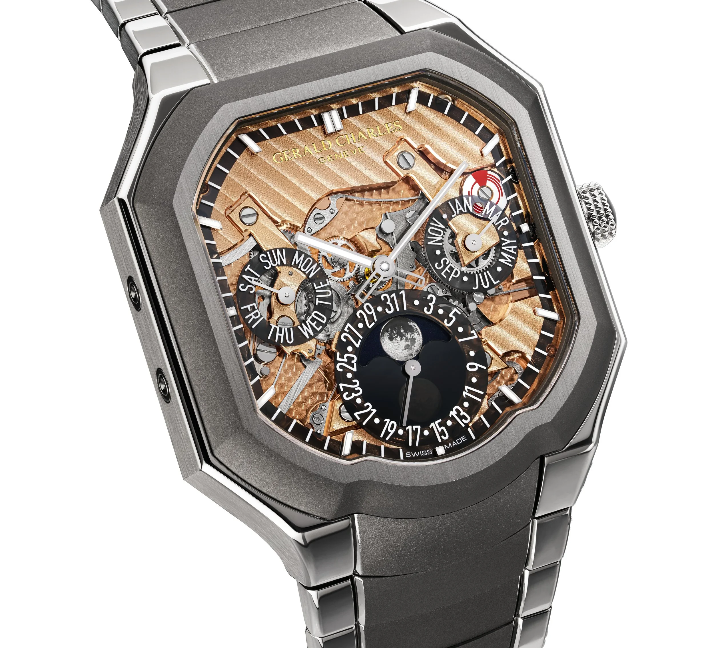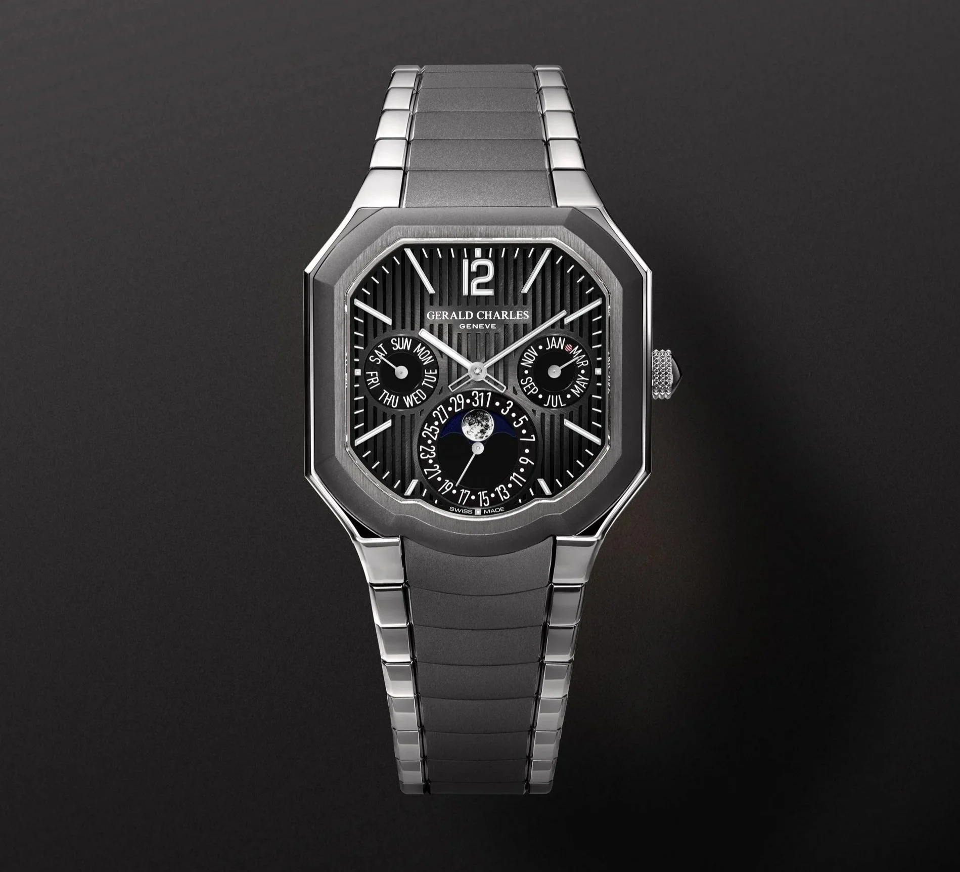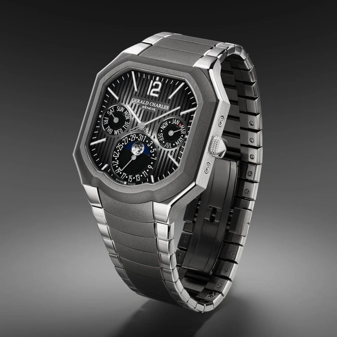 Mr. Garcia said: “The Masterlink Perpetual Calendar represents the most advanced expression of the Gerald Charles design language to date. It marks a turning point in the Masterlink collection, where form, function, and movement converge into a single architectural system. From the sculpted case to the structured dial and shaped caliber beneath, every element speaks the same visual grammar. This is not a watch where aesthetics were layered on after engineering. Nor is it a complication adapted to an existing form. It is a unified whole – a perpetual calendar designed from the start to feel purposeful, wearable, and unmistakably Gerald Charles.
