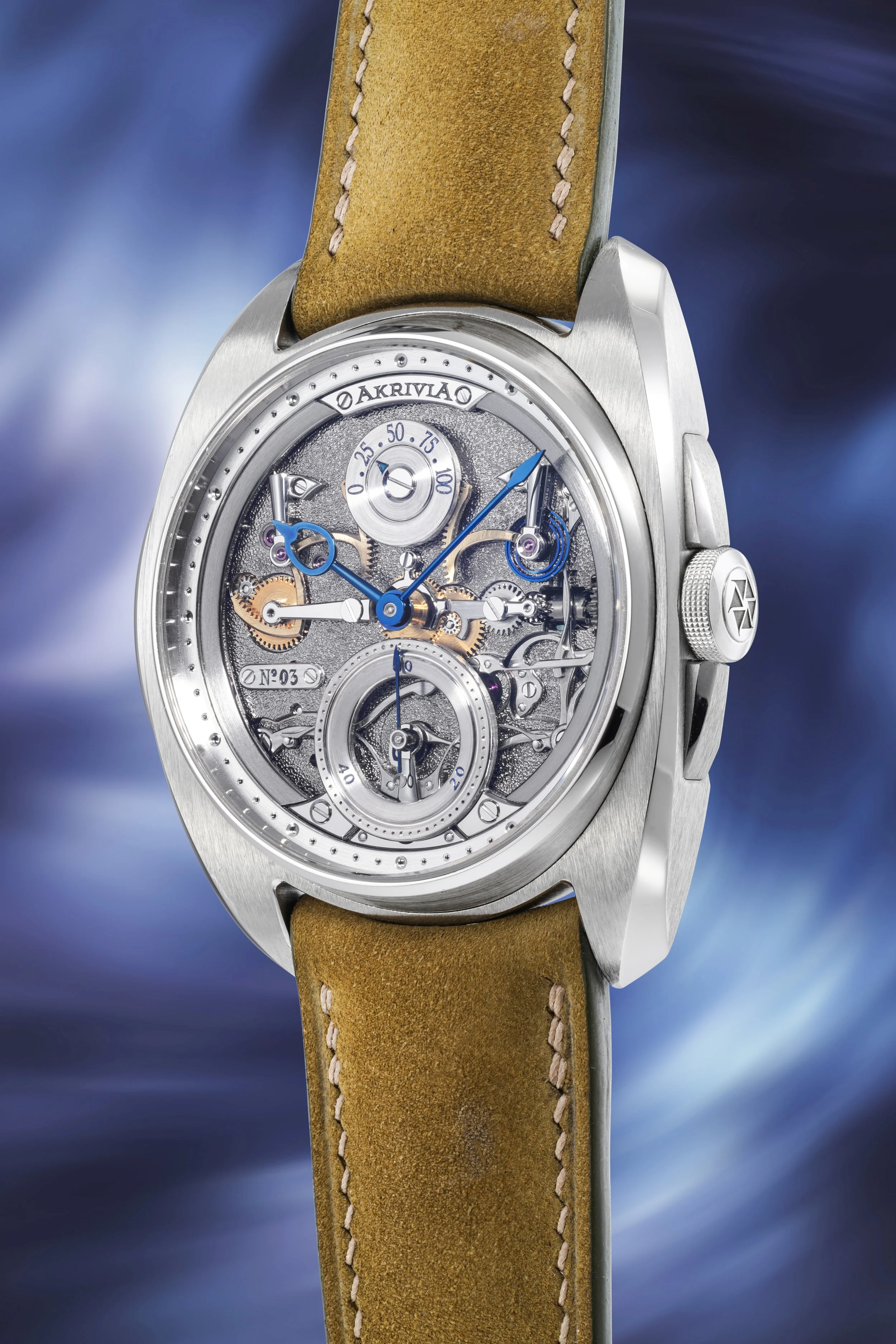 AK-06, Stainless Steel, Circa 2018 Estimate: CHF 350,000 – 700,000 Founded in 2012 by Rexhep Rexhepi, Akrivia has rapidly become one of the most respected names in contemporary independent watchmaking. The AK-06, introduced in 2017, exemplifies Rexhepi’s pursuit of chronometric precision and refined mechanical architecture. Its manual-wind movement, visible dial-side, features a beautifully symmetrical layout with a power-reserve display and a zero- reset seconds mechanism. The model was produced in two limited series of 25 pieces each, with the present example belonging to the stainless-steel version.