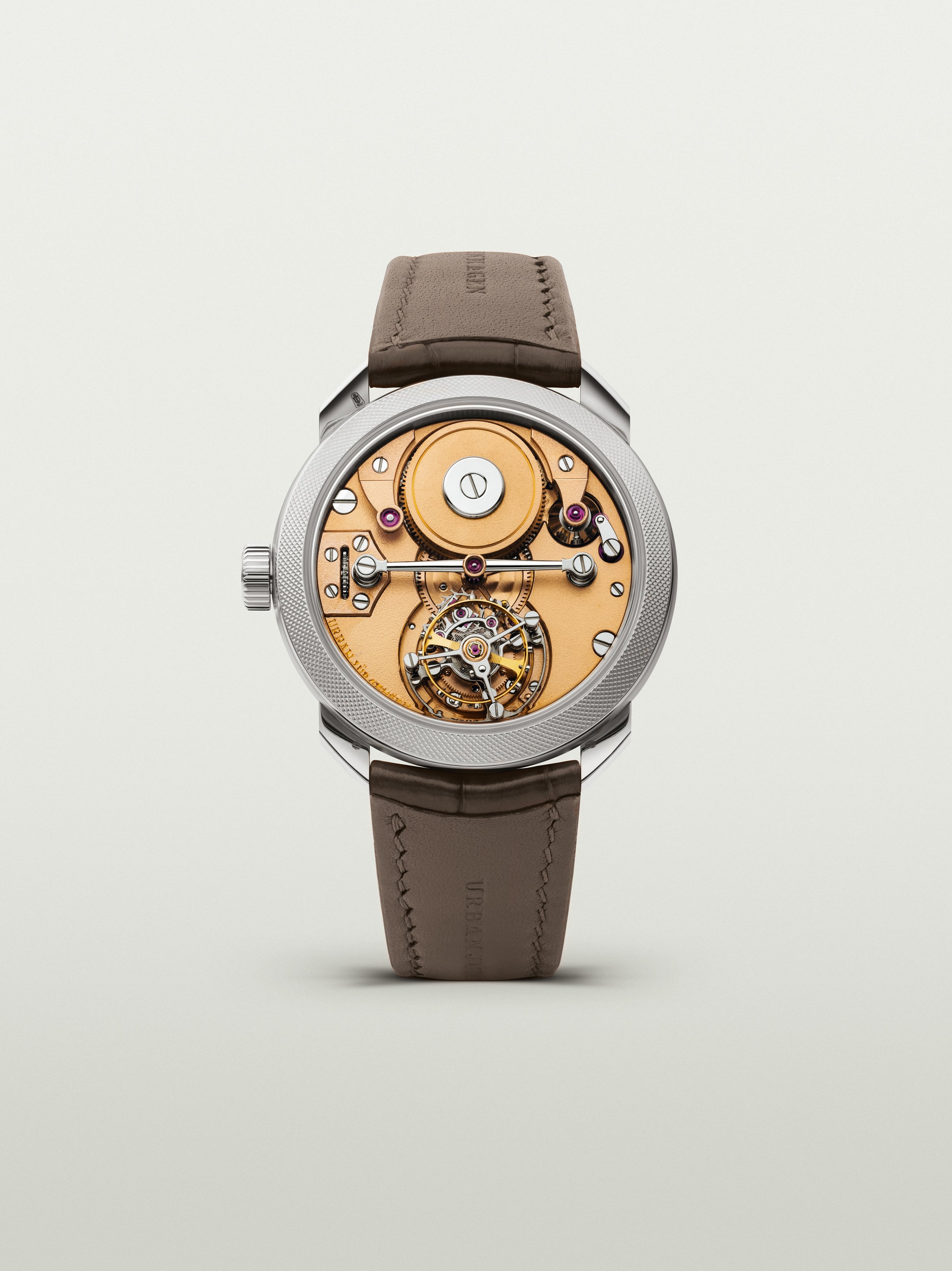 The UJ-2 and UJ-3 bring the new signature UJ double wheel natural escapement to life. It is inspired by the work of Urban’s teacher, Abraham-Louis Breguet, perfected by Kari, and tailored specifically for this collection. With two escapement wheels delivering direct impulse to the balance, this design minimizes friction and enhances efficiency, ensuring exceptional stability. The lubrication-free system further advances chronometric precision while improving durability and shock resistance. This movement is a new path for the company while honoring the legacy of Urban’s watchmaking and movement design.
